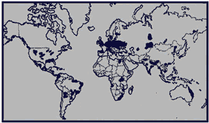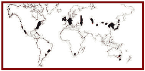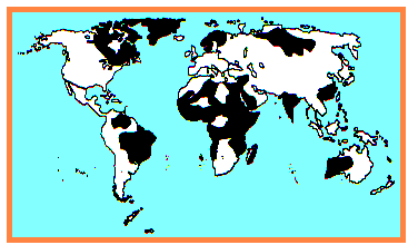 06. (PUC - PR) No Planisfério, está representada, em negrito, a localização das principais concentrações:
