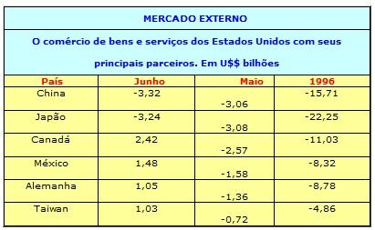 Observando a tabela, com quais países os americanos apresentam maior desequilíbrio em seu comércio externo?